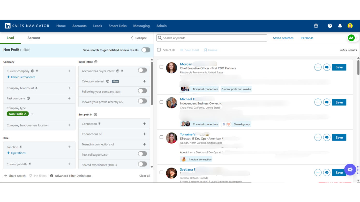 - Advanced Search Filters: This is where Sales Navigator truly shines. You gain access to highly granular filters like industry, company size, function, seniority level, keywords, and even specific buying signals. This allows you to pinpoint your ideal prospects with precision.